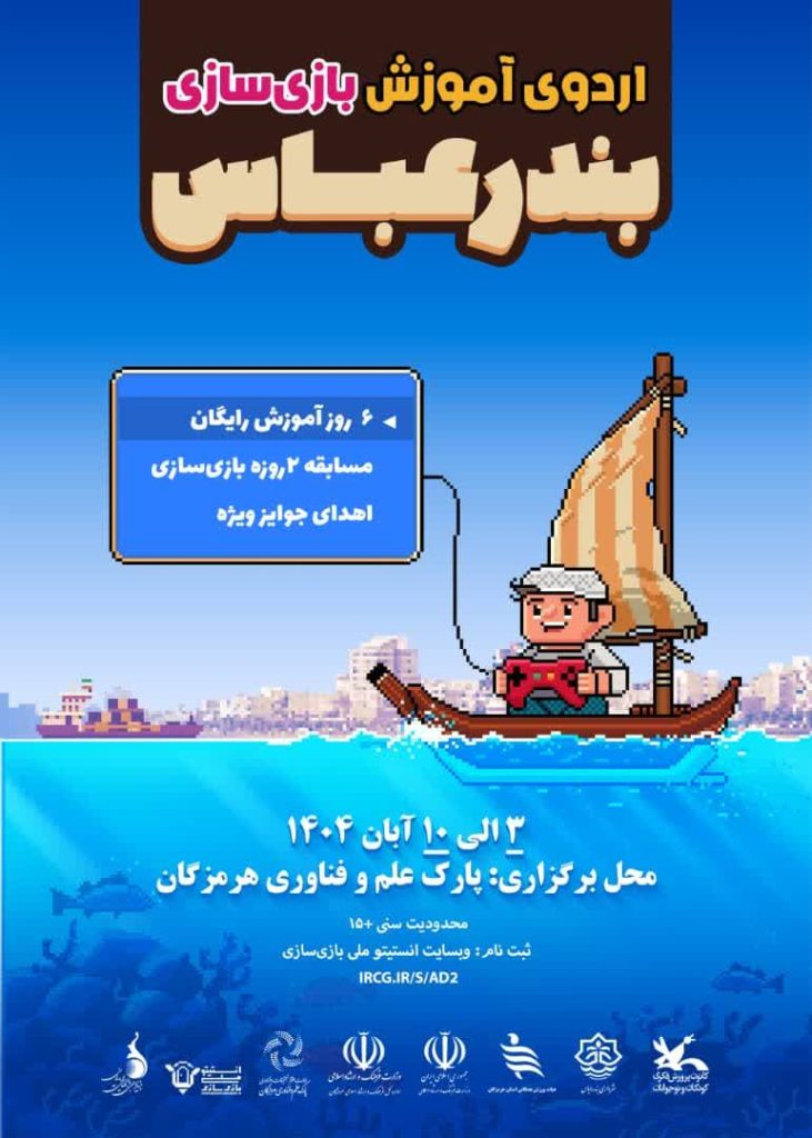 گفتنی است: برگزاری اردوی آموزش بازی سازی در بندرعباس به مدت ۶ روز آموزش رایگان و ۲ روز مسابقه در محل پارک علم و فناوری هرمزگان از تاریخ ۳ الی ۱۰ آبان ماه می باشد که علاقمندان با رده سنی ۱۵ سال به بالا می توانند با مراجعه به وبسایت انستیتو ملی بازی سازی به آدرس ircg.ir/s/ad2 مراجعه کنند.