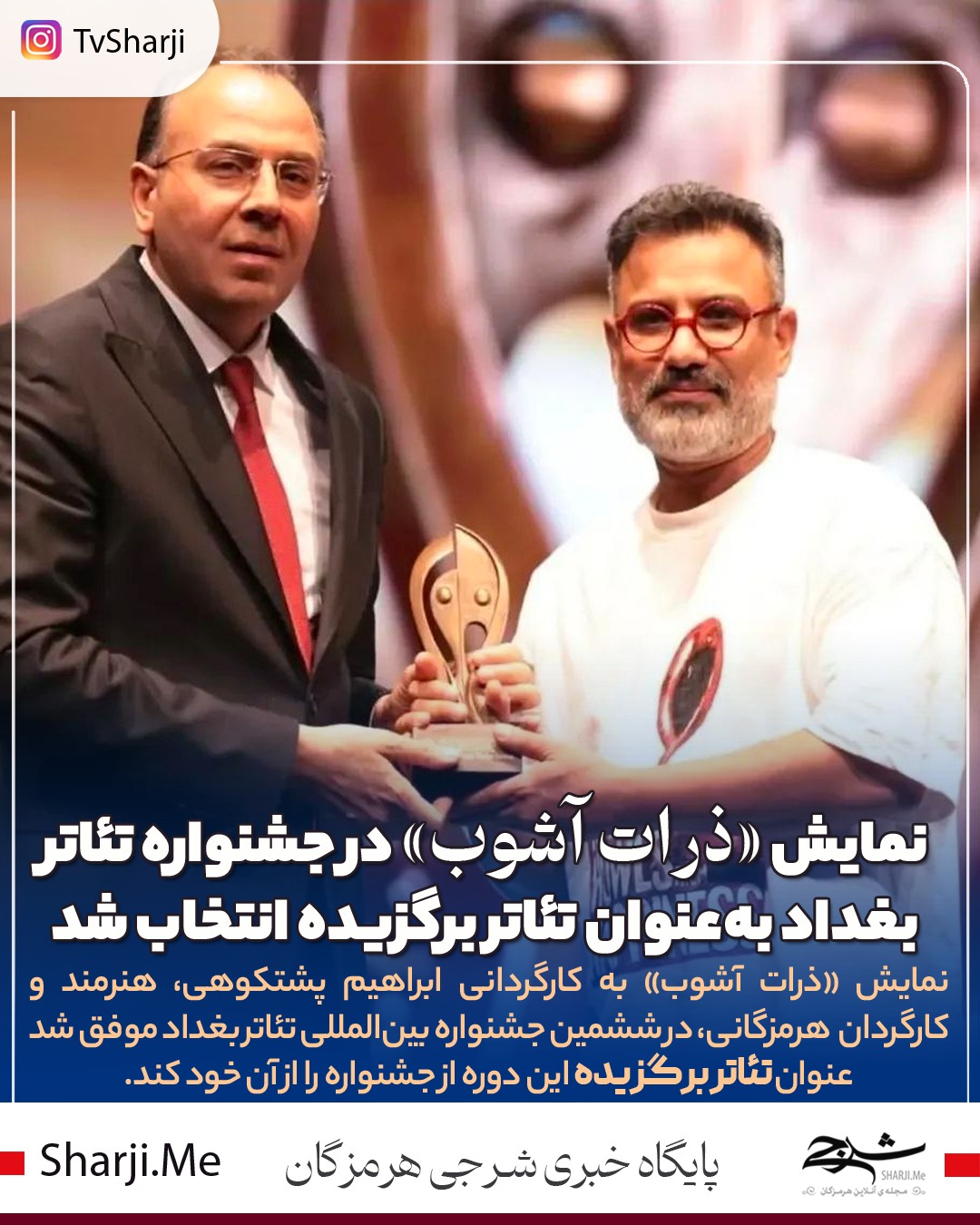 نمایش «ذرات آشوب» به کارگردانی ابراهیم پشتکوهی، هنرمند و کارگردان هرمزگانی، در ششمین جشنواره بین‌المللی تئاتر بغداد موفق شد عنوان تئاتر برگزیده این دوره از جشنواره را از آن خود کند.
