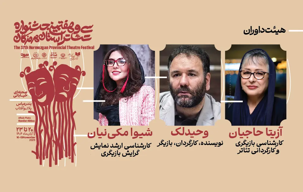 بر اساس این حکم، سرکار خانم آزیتا حاجیان، استاد برجسته بازیگری و چهره ماندگار سینما و تئاتر ایران، جناب آقای وحید لک، کارگردان و فعال حوزه تئاتر، و سرکار خانم شیوا مکین‌نیا، بازیگر و کارگردان صاحب‌سبک، مسئولیت داوری آثار راه‌یافته به مرحله نهایی جشنواره را بر عهده خواهند داشت.