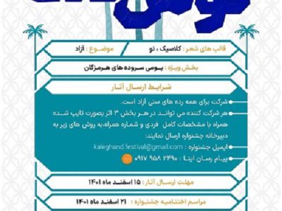 گفتنی است: مرحله نهایی این جشنواره از ششم تا هشتم آذرماه ۱۴۰۴ در تالار فرهنگ و هنر کرمان برگزار میشود.