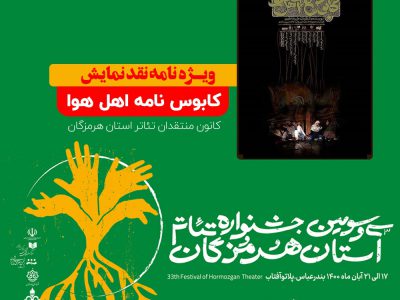 تئاتر جشنواره تئاتر استان هرمزگان نمایش « دختر ساحل» چهارمین اجرای نخستین روز سی و پنجمین جشنواره تئاتر استان هرمزگان به روی صحنه رفت