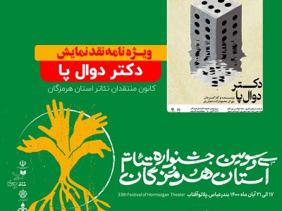 گفتنی است: سی و پنجمین جشنواره تئاتر استان هرمزگان، ۳۰ آبان الی ۲ آذر ماه با حضور ۸ گروه نمایشی در بخش صحنه ای و ۷ گروه نمایشی در بخش خیابانی در پلاتو آفتاب، فرهنگسرای طوبی و مکان های عمومی سطح شهر بندرعباس برگزار می شود.