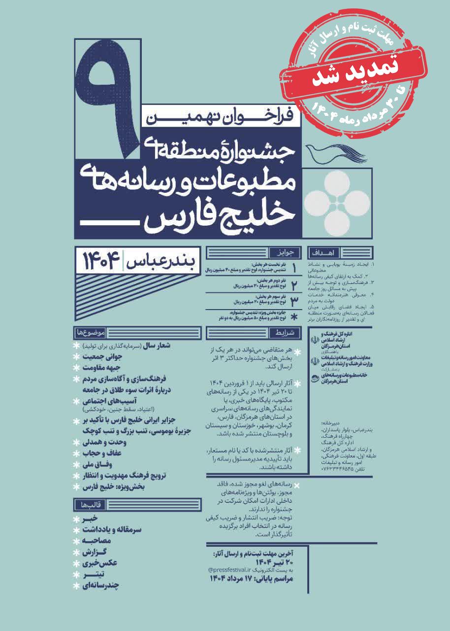 فراخوان نهمین جشنواره منطقه ای مطبوعات و رسانه های خلیج فارس